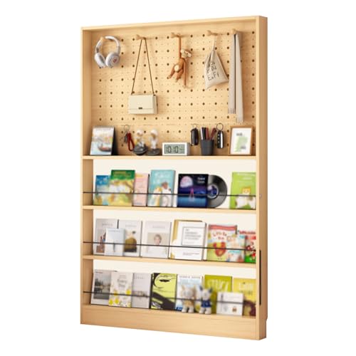 MESCXTY Behind Door Bookshelf,Floor Display,Large Capacity Book Shelf 3.94in Compact area,Wall Mount Perforated Board,Suitable for Books,CDs,Magazine Racks Wood color 47.24x3.94x74.02in