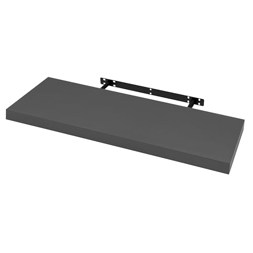 WOLTU Floating Shelf, Wall Shelf, Bookshelf, Wooden Board for Books, Pictures, Decoration, Kitchen Bedroom Living Room, Dark Grey 100x23x3.8cm RG9317dgr