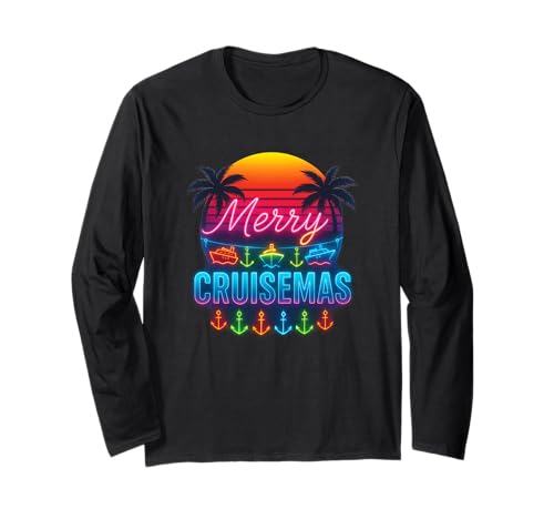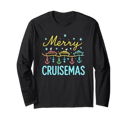 Christmas Family Cruise Merry Cruisemas Boat Trip Xmas 80s Long Sleeve T-Shirt