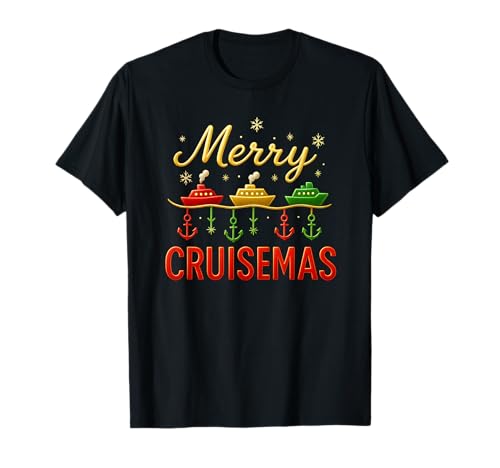 Christmas Family Cruise Merry Cruisemas Boat Trip Xmas 80s T-Shirt