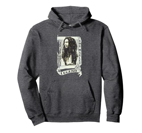 Bob Marley Legend Scroll Pullover Hoodie, Adult Unisex, Dark Heather Grey, Large