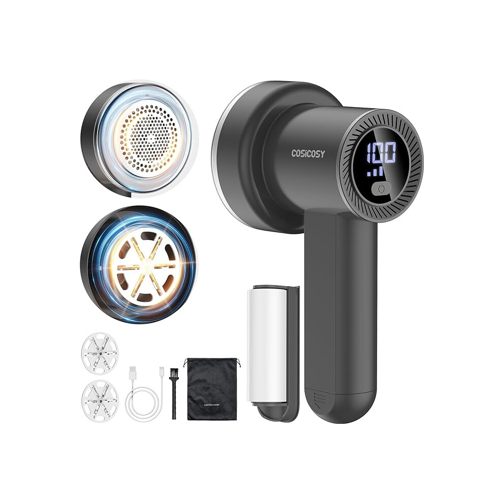 Cosicosy Debobbler, Bobble Remover for Clothes Fabric Shaver Lint Remover Clothes Debobbler LED Digital Display 2-In-1 Lint Roller Wool Defuzzer Fluff Remover Quick and Effective (3 Blades Included)