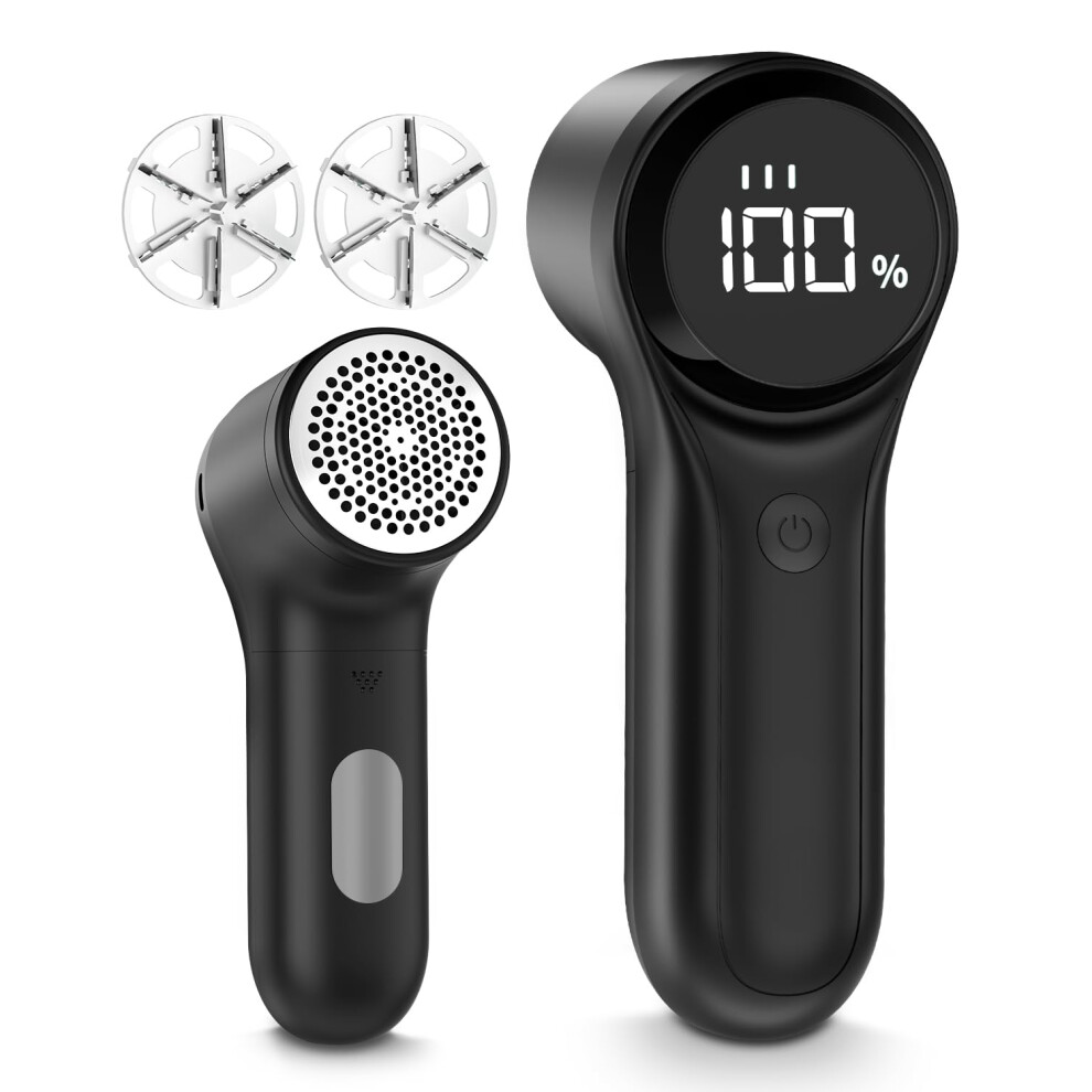Lint Remover, Bobble Remover for Clothes, Rechargeable Fabric Shaver with LED Display & 3 Speeds, Effectively Sweater Defuzzer Remove Fluff, Lint, and Bobbles, Black, 1 pcs