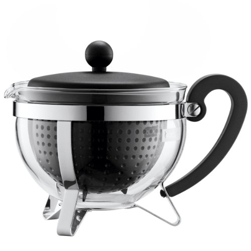 BODUM 1.3 Litre Borosilicate Glass Chambord Teapot with Coloured Handle/Transparent Filter and Lid, Black