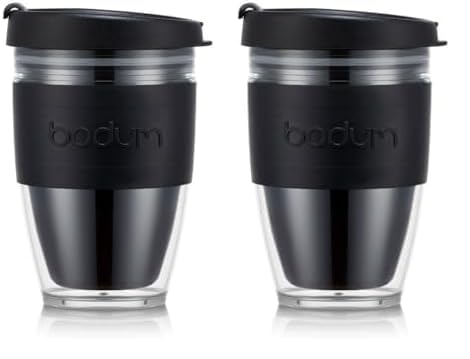 BODUM 11889-01S JOYCUP Travel Mug, Double Wall, 0.3 l, Black Band, Plastic (Pack of 2)