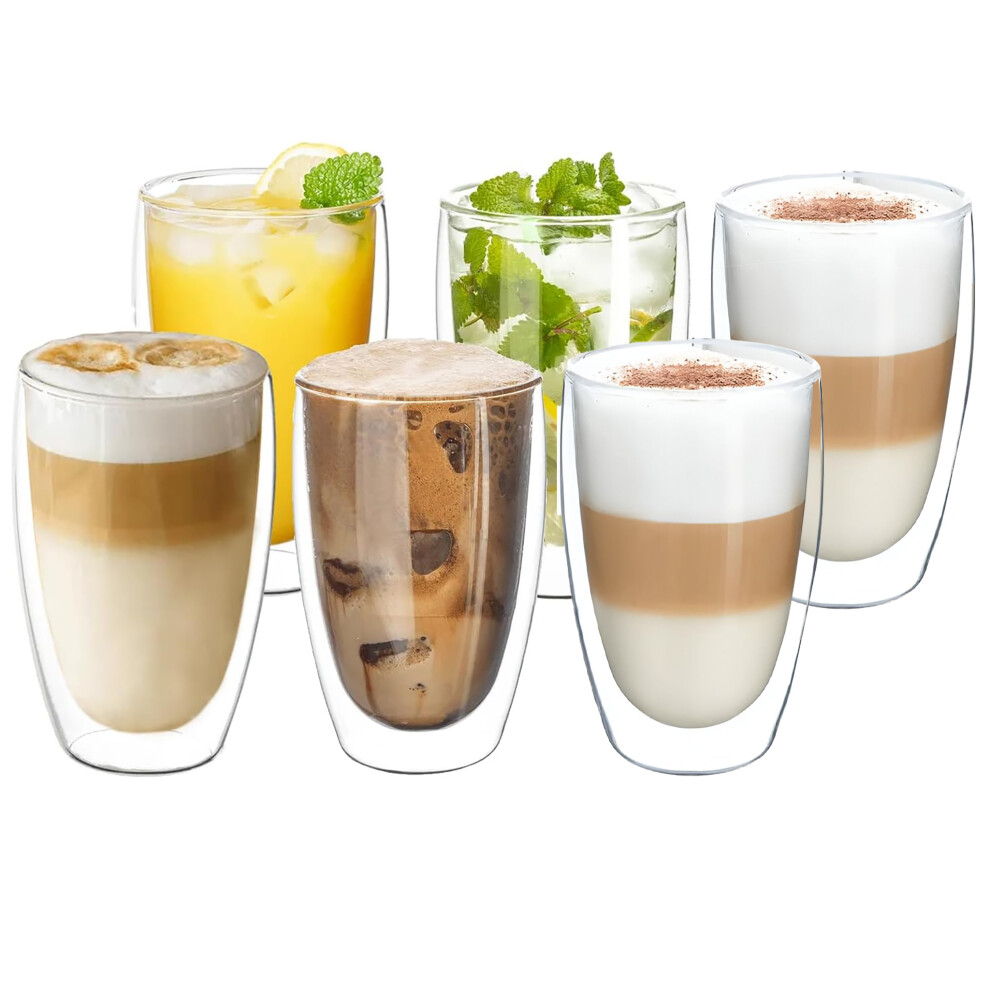 Thermo Glasses Coffee Drinks Glassware Handmade Glass Double Walled 450 ml Set