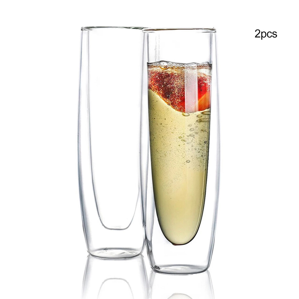 Elegant Stemless Champagne Flutes, Crystal Glassware For Memorable Moments, 2Pc Transparent Borosilicate Double-Walled Set With Modern Design For