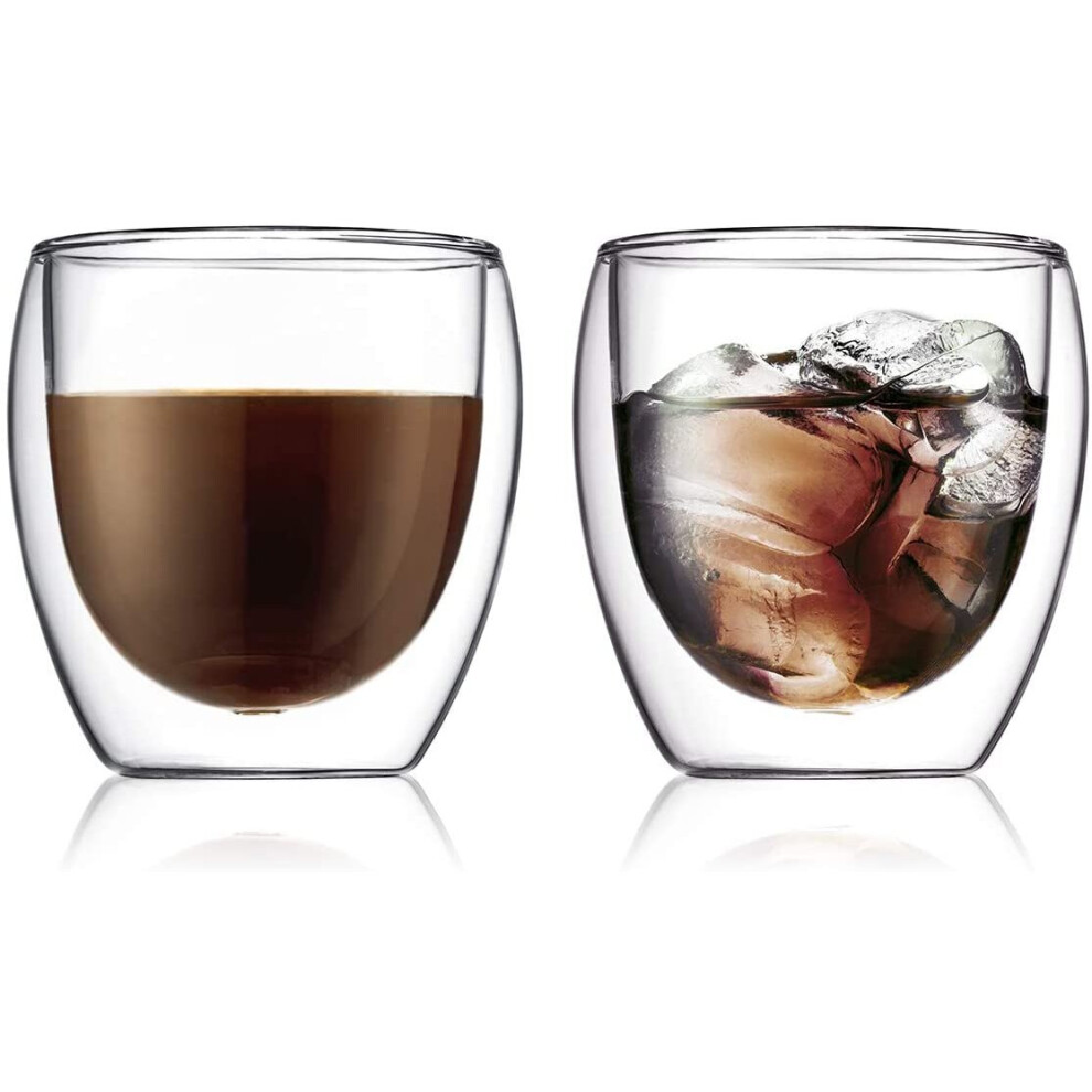 Bodum 10484-10 PILATUS Glass Set (Double-Walled, Isolated, Dishwasher Safe, 0.25 L/8 oz) - Pack of 2, Transparent