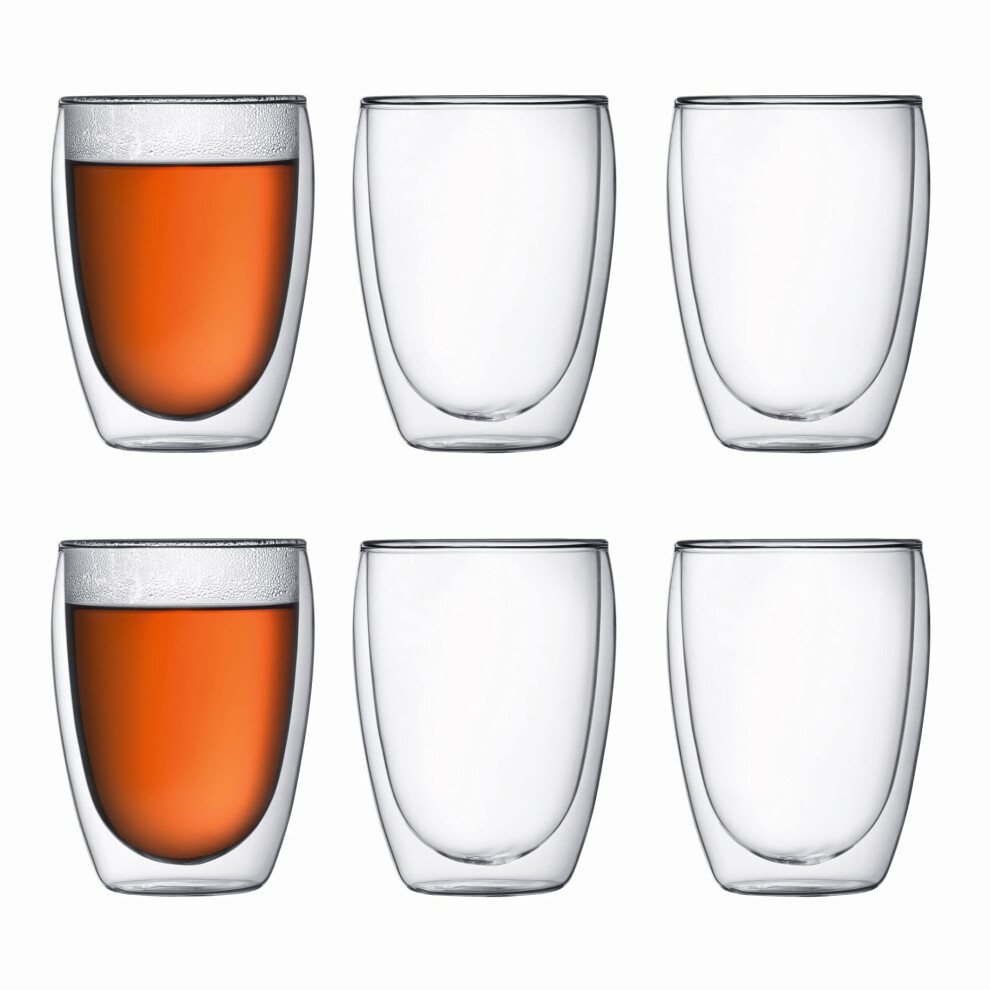 Bodum Double Walled Glasses Pack of 6 PAVINA Paris - 270ml Cups - Dishwasher Safe Thermal Cup - Mouth-Blown Borosilicate Glass