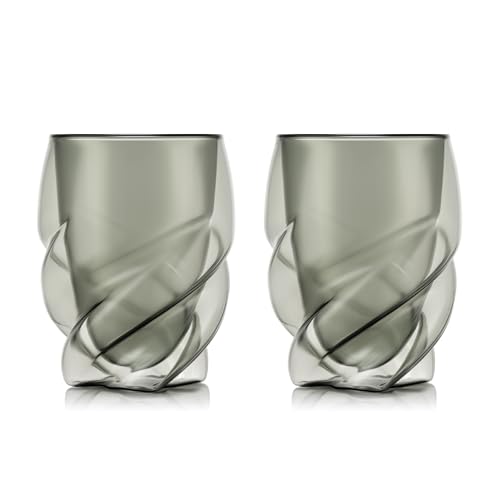 Bodum Double Walled Glasses Pack of 2 PAVINA Paris Transparent Grey - 270ml Cups - Dishwasher Safe Thermal Cup - Mouth-Blown Borosilicate Glass