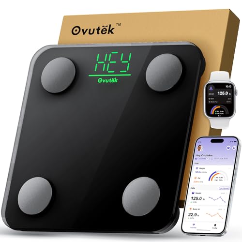 Ovutek Smart Scale for Body Weight, Body Fat Scale Digital Bathroom Scale BMI Weighing, Accurate Body Composition Monitor for People with Smartphone App, Bluetooth Enabled, Compact Size, 180kg