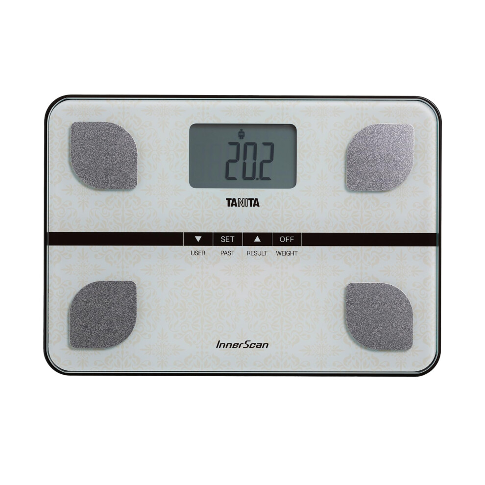 Tanita BC-732 Compact Family Body Composition Scale, Glass Weighing Scales Body Weight Monitor, Accurate Weight Scale & Body Scales, Off White Paisley