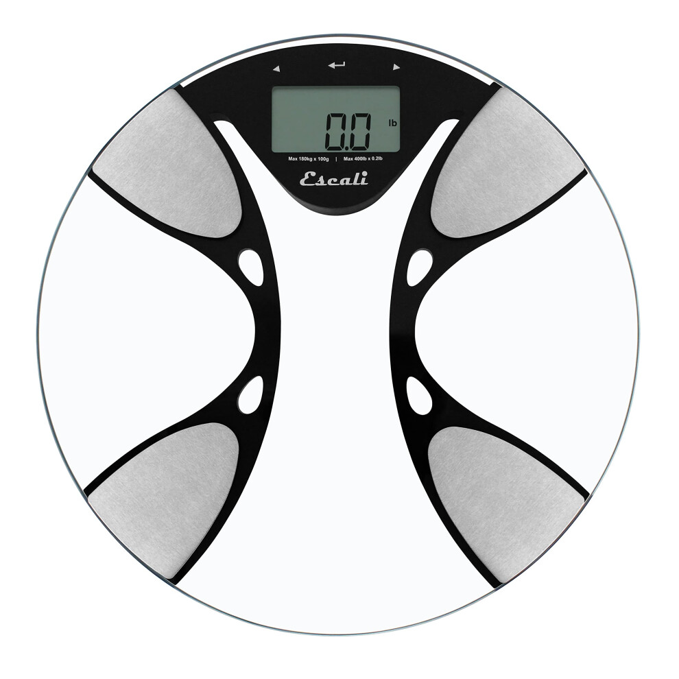 Escali BFBW180 Ultra Slim Body Composition Scale, Glass, 400 Pound Capacity, Body Fat, Water Percentage, Muscle and Bone Mass