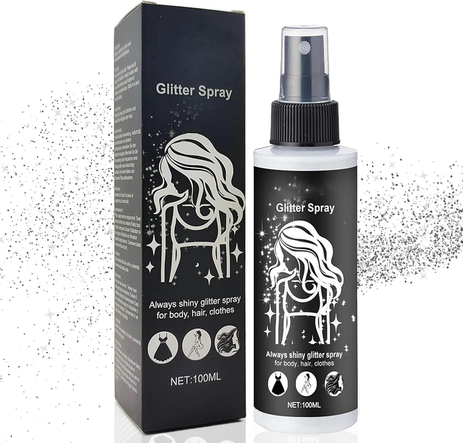 Body Glitter Spray, 120ml Silver Glitter Spray for Hair, Body & Clothes, Instan
