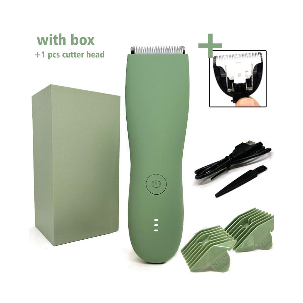 (green with box set)Body hair trimmer shaver for men ball trimmer for groin.