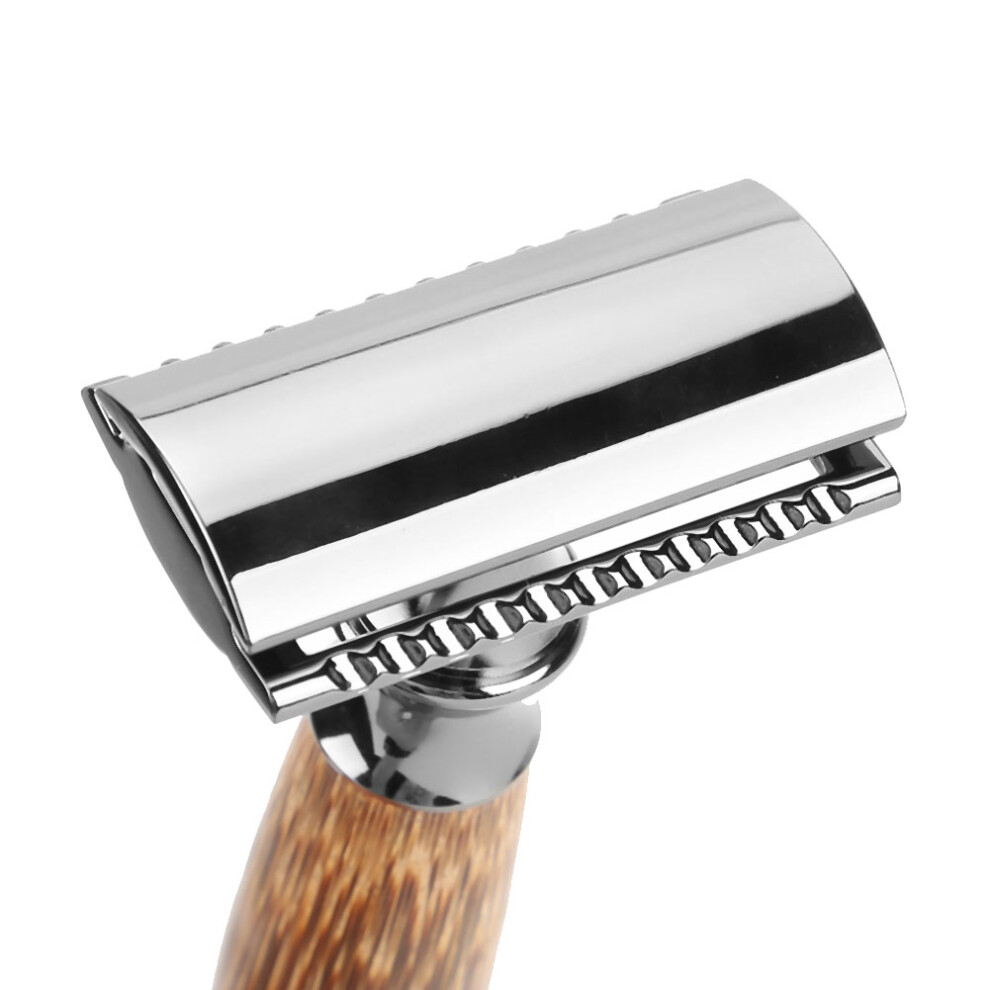 Professional Men Bamboo Handle Manual Shaver Portable Beard Body Hair Shaver Trimmer