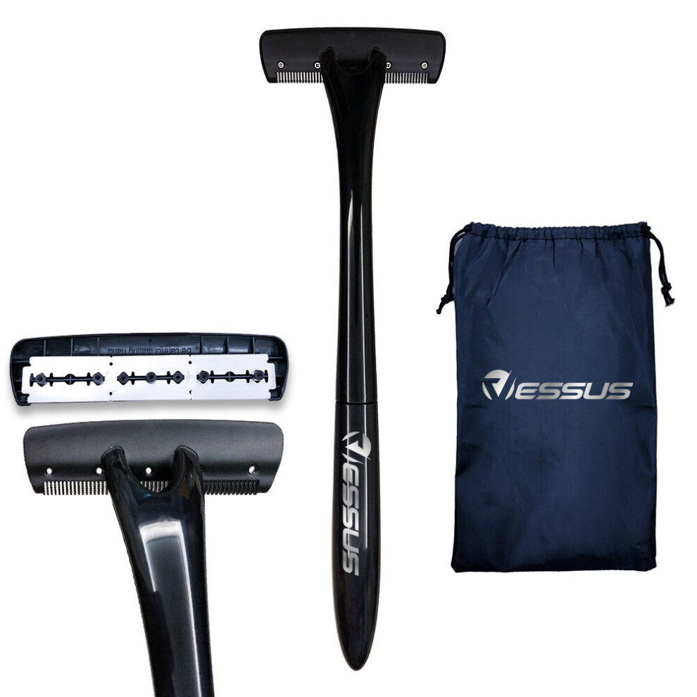 Vessus Safety Razor Back and Body Hair Shaver for Men and Women - Wet or Dry Body Groomer for Men and Women (Extra 5 Razor Blades Included)