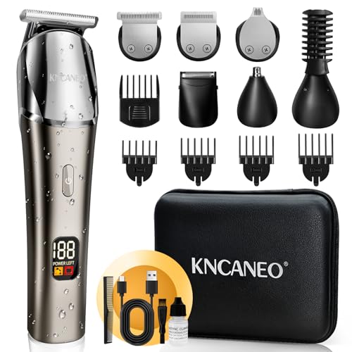 KNCANEO Beard Trimmer for Men, 6 in 1 Professional Hair Clippers Set (11pcs), Cordless Electric Razor Shaver for Nose Ear Body Face Mustache Trimmer