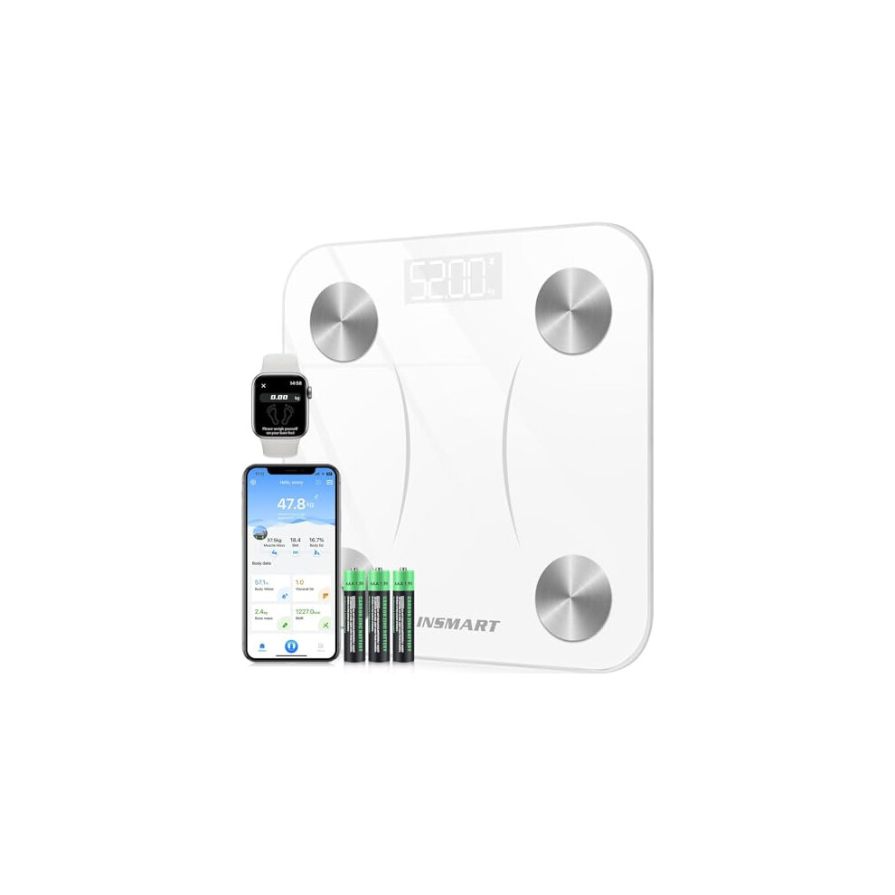 INSMART Body Fat Scales, Digital Personal Scales with App, Bluetooth Scales for Body Fat, BMI, Weight, Pulse Rate, Muscle Mass, Water, Protein, Bone