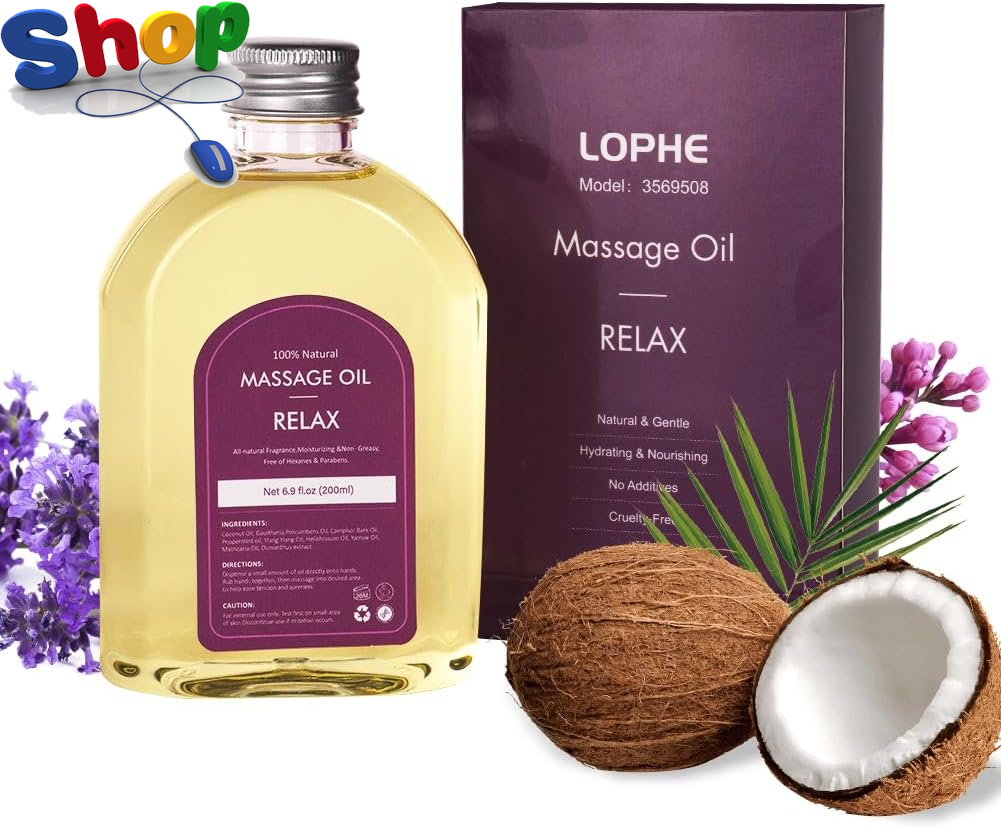 Massage Oil 200 Ml with Natural Coconut & Peppermint, Soothing Body Massage Oil