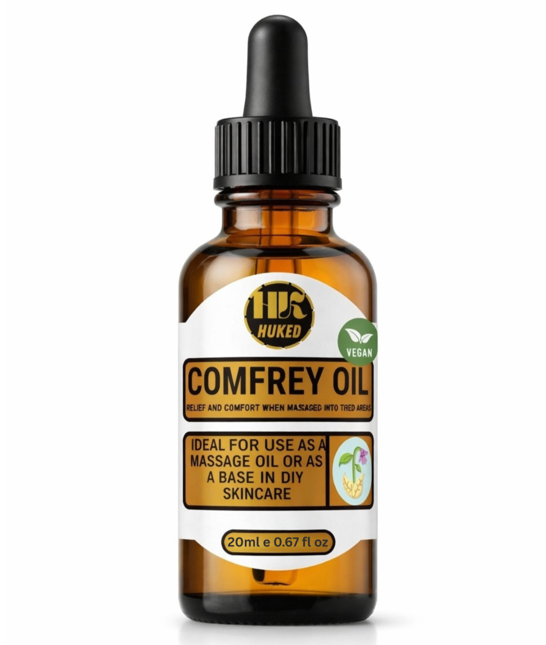 Huked Comfrey Oil 20ml –Herbal Infused Massage Body Oil | Travel Size | Handmade