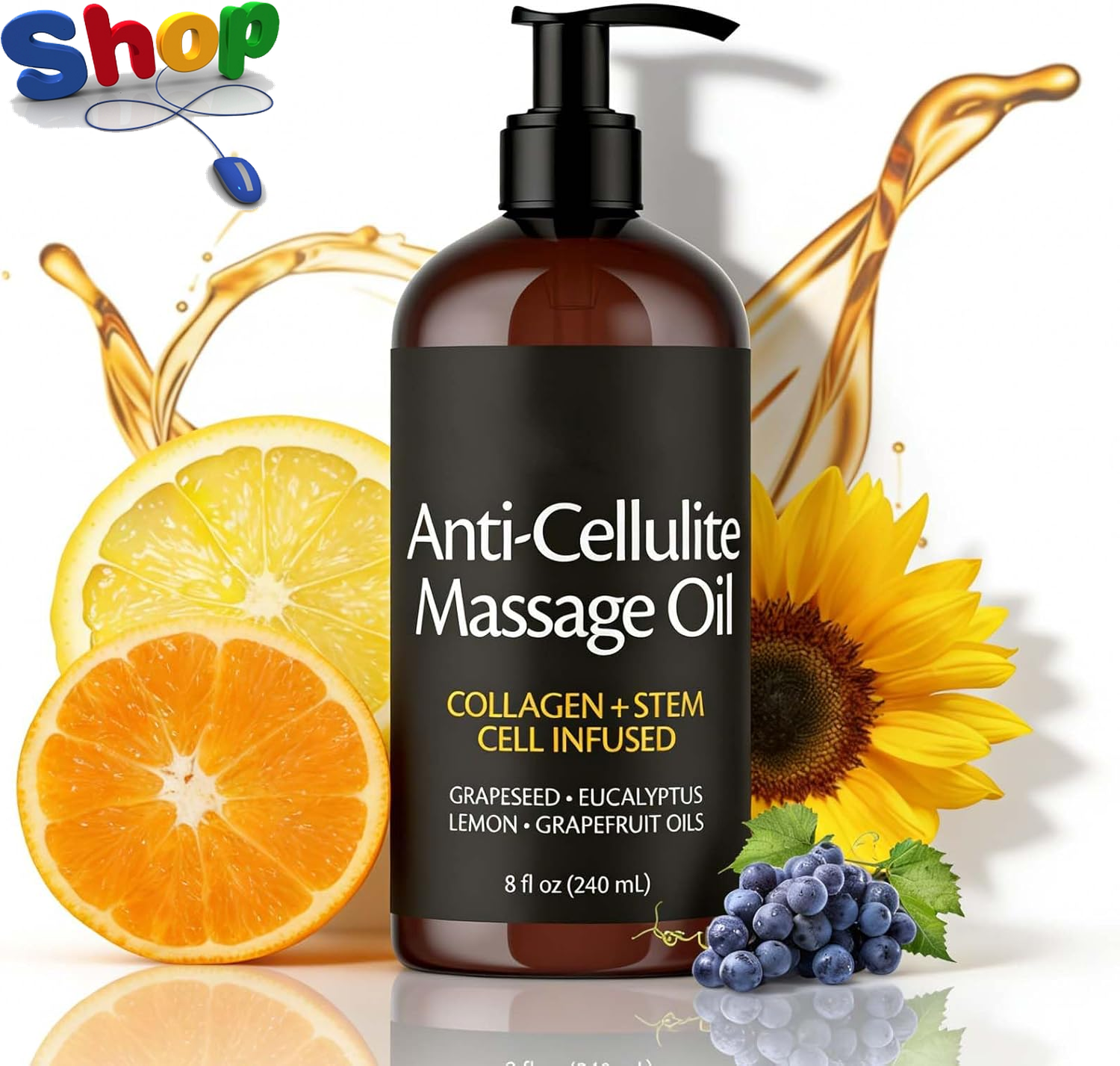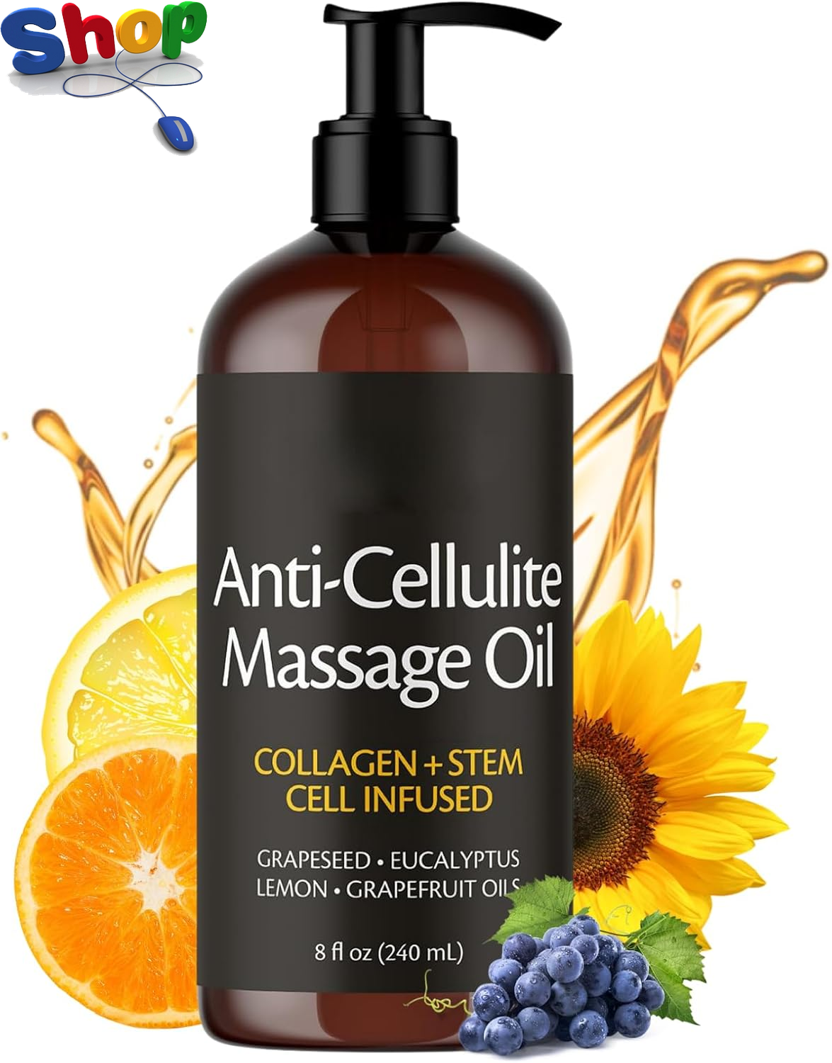240Ml anti Cellulite Massage Oil, Firming Body Massage Oil with Collagen & Sunfl
