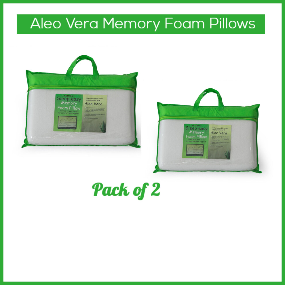 (Pack of 2) Aloe Vera Pillows Memory Foam Head Neck Back Body Support Pillow Pack 1 , 2 , 4.