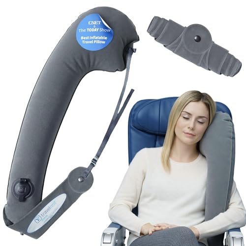 TRAVELREST All-in-One Neck & Body Pillow, Advanced Support Design, Travel Essential, Memory Foam Inserts, Washable Velour Cover, Inflatable, Airplane, Car Seat, Sleeping on Long Flights & Trips (Grey)