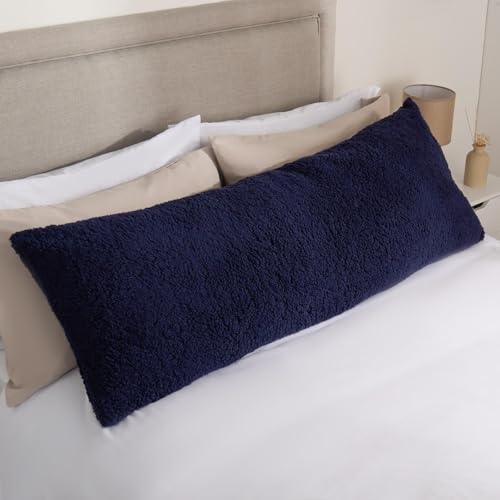 OHS Teddy Bolster Cushion Navy Blue, Long Pillows for Bed Super Soft Comfy Pregnancy Sleeping Body Pillow Back Support Cuddle Cushion Fleece Snuggle Pillow, 137x40cm
