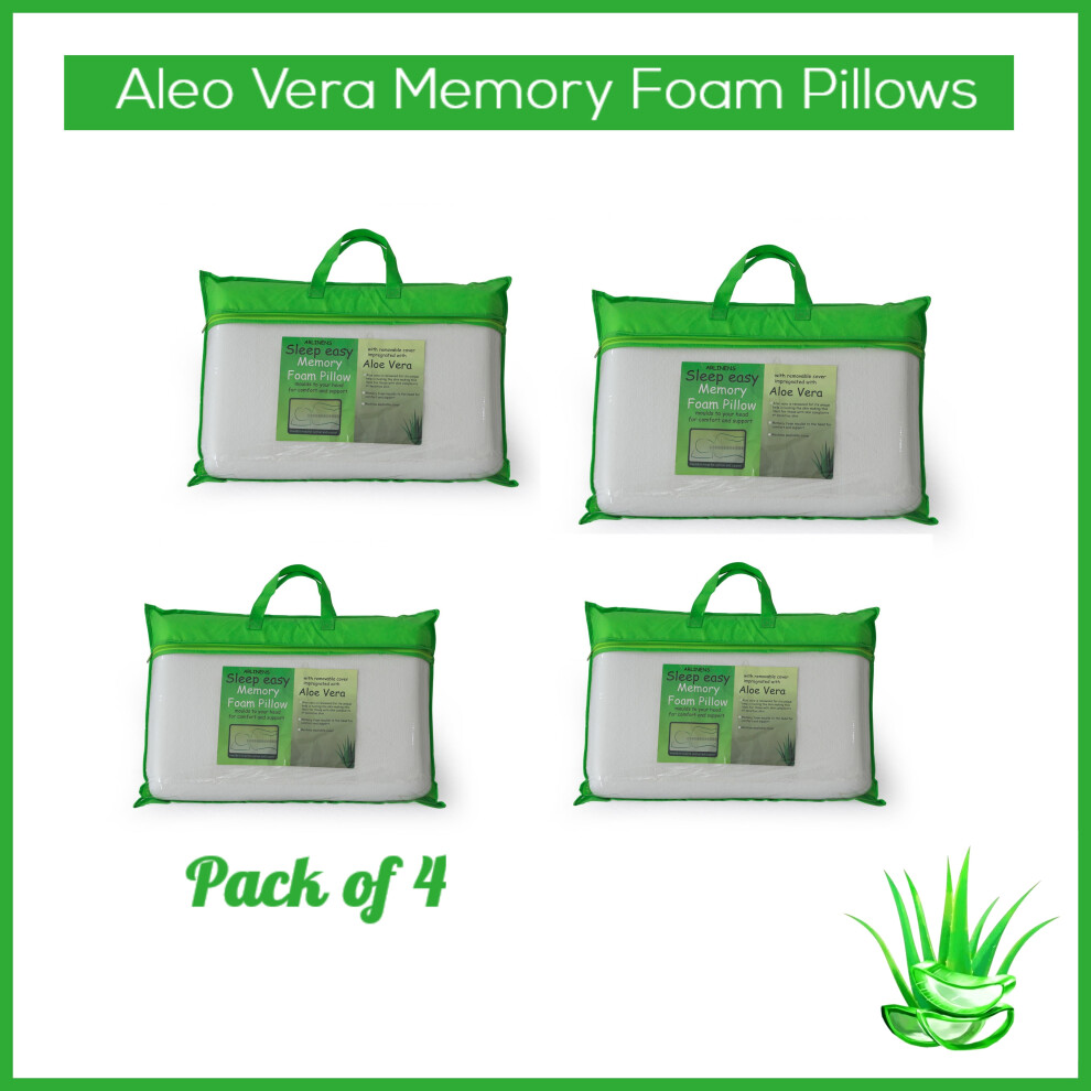 (Pack of 4) Aloe Vera Pillows Memory Foam Head Neck Back Body Support Pillow Pack 1 , 2 , 4.