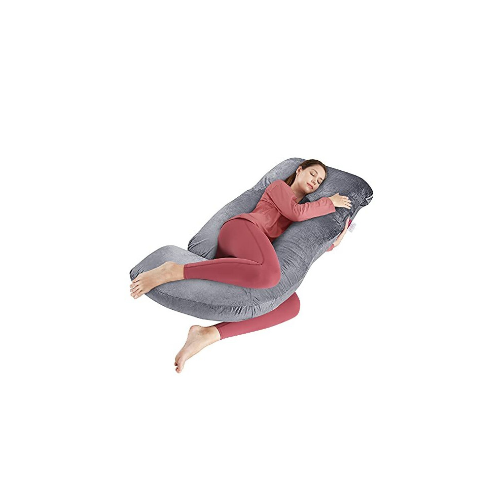 Wndy's Dream Pregnancy Pillow with Grey Velvet Cover, J Shaped Full Body Support Pillow for Sleeping Well,with Removable Washable Pillowcase