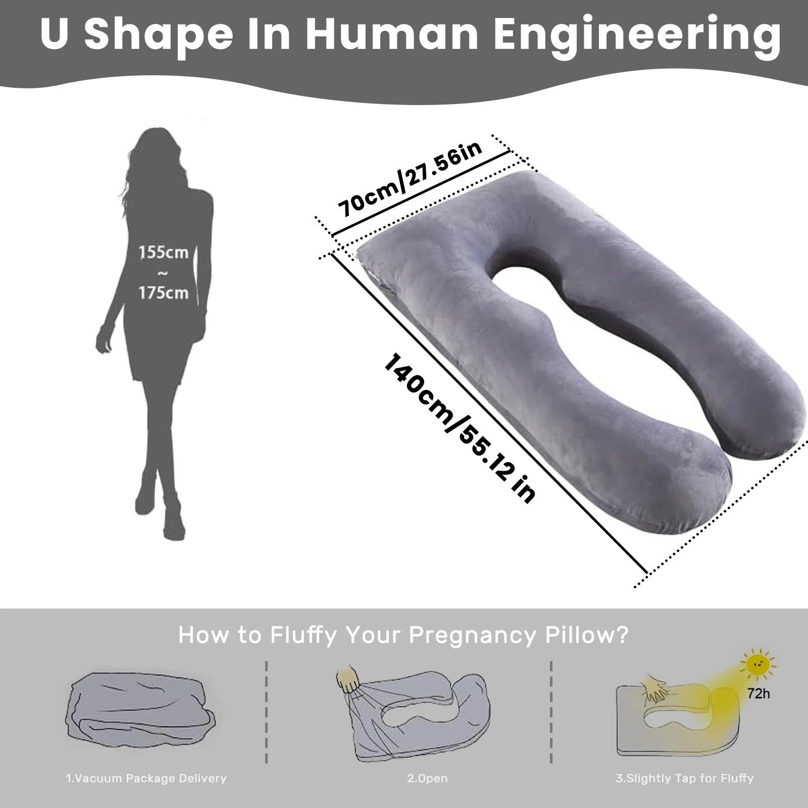 AS AWESLING Pregnancy Pillow, U Shaped Full Body Pillow, Nursing, Support and Maternity Pillow for Pregnant Women with Removable Velvet Cover (Grey)