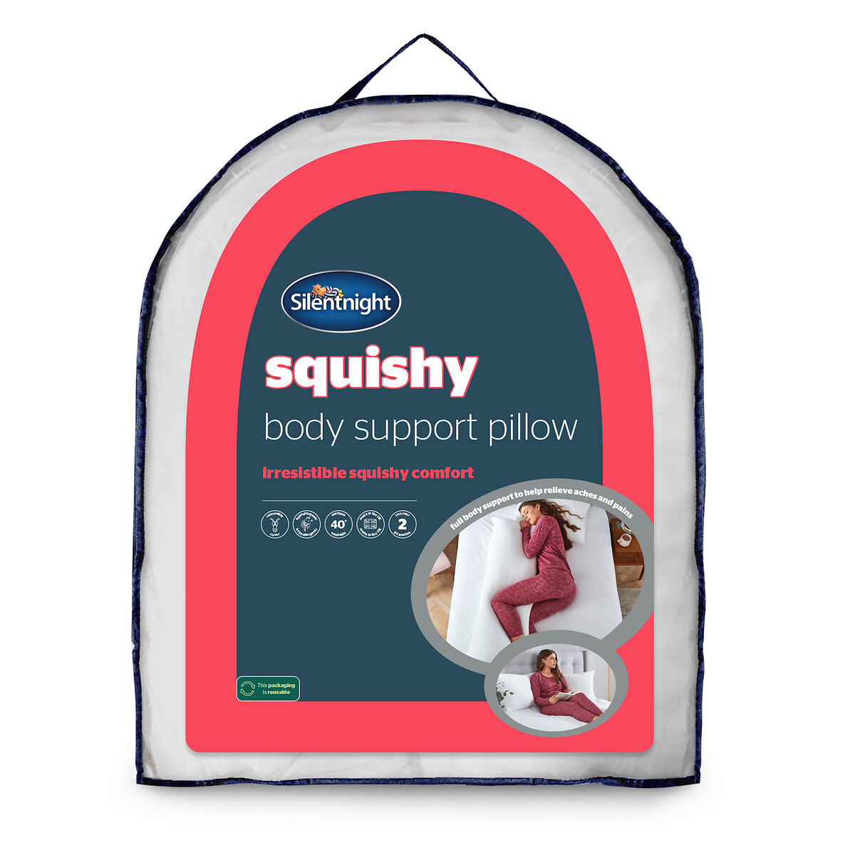 Silentnight Body Support Pillow with Pillowcase - Pregnancy Nursing Support Shaped Pillows and Case - Machine Washable in White, 147 x 48 cm