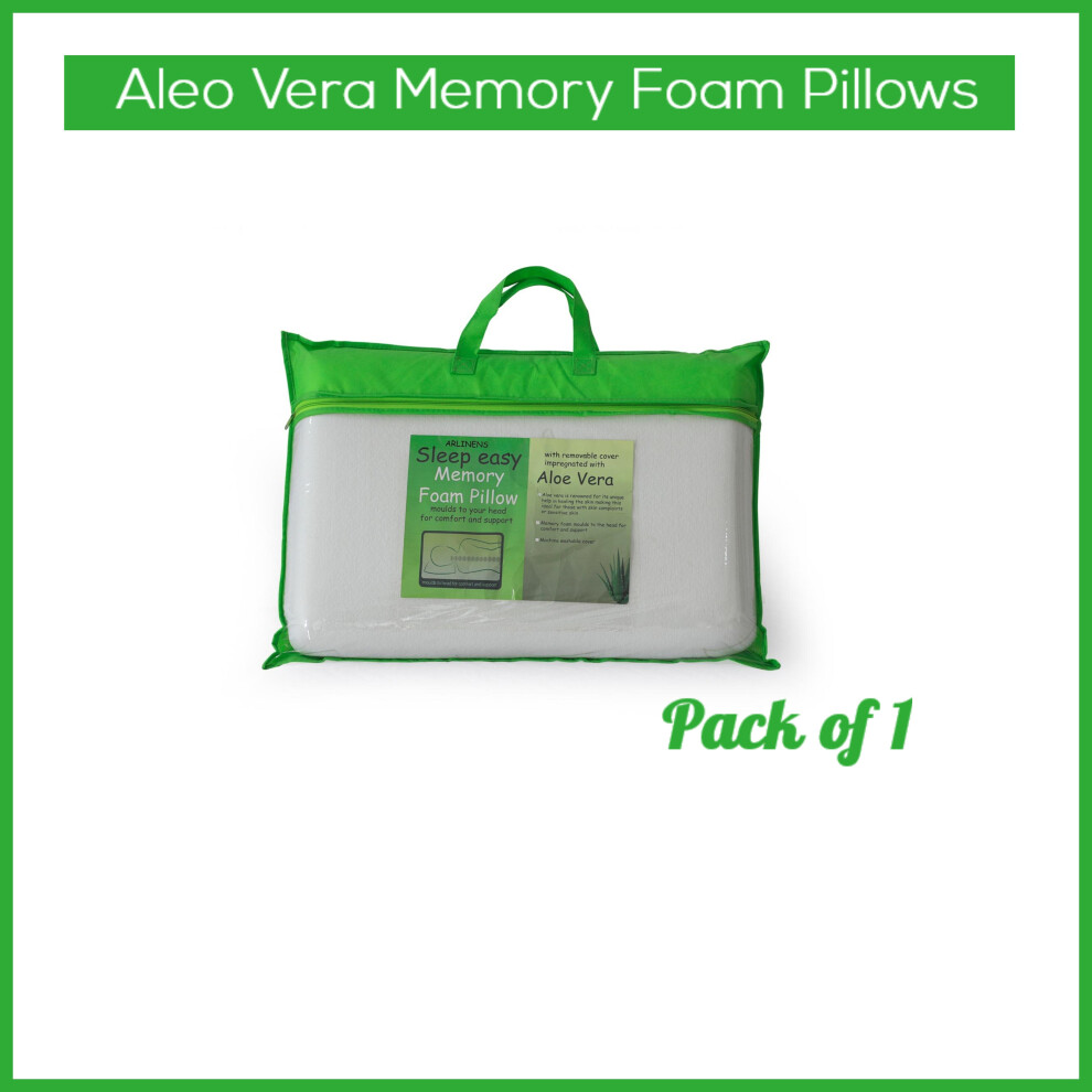 (Pack of 1) Aloe Vera Pillows Memory Foam Head Neck Back Body Support Pillow Pack 1 , 2 , 4.