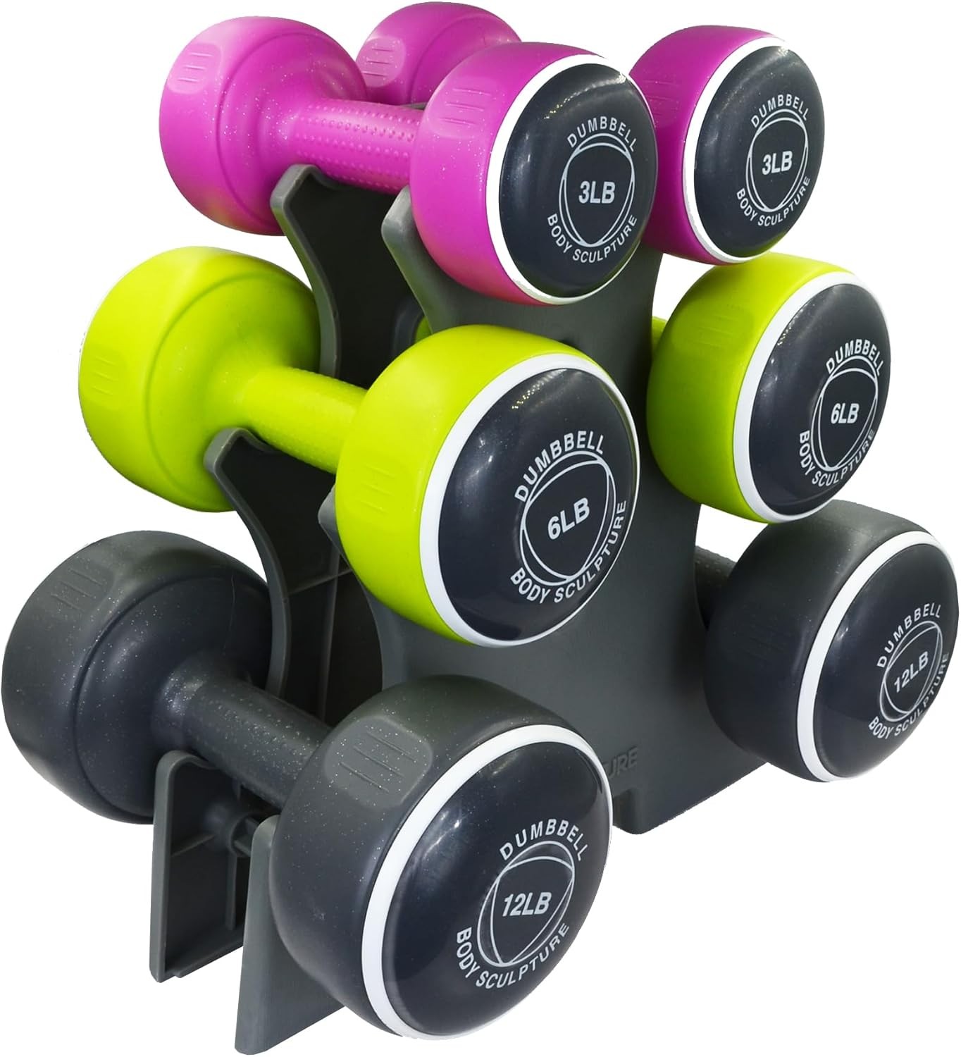 Body Sculpture Dumbbell Set Home Weight Lifting 1.5kg 3kg 5kg Pairs with Stand