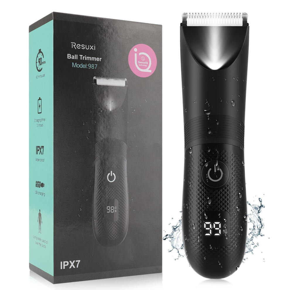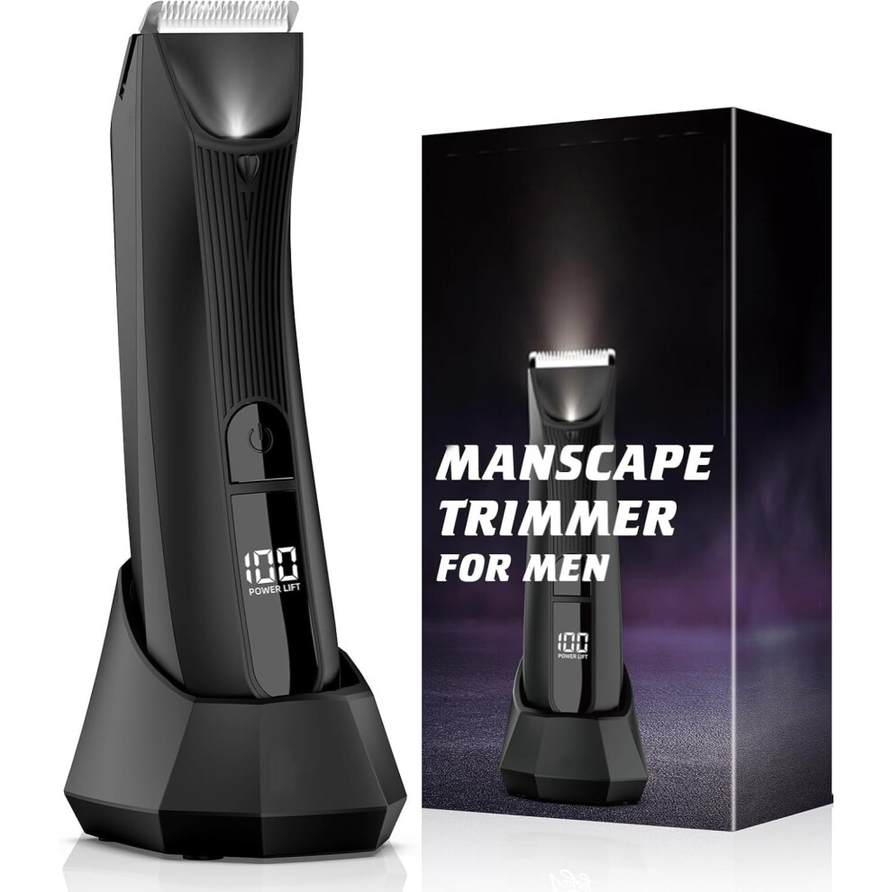 Mens Body Hair Trimmer with AntiCut Ceramic Blades, Waterproof Groin Shaver, LED Display