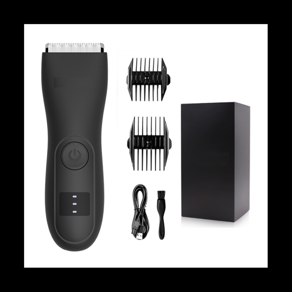 Mens Body Hair Trimmer with Waterproof Grooming, Ceramic Blade Groin Trimmer, Black Electric Shaver