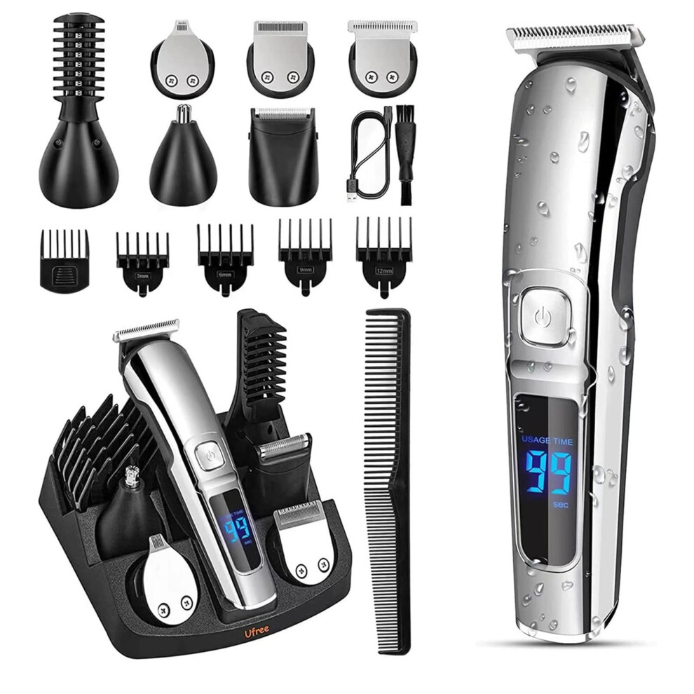 Mens Hair Clippers Cordless Waterproof Beard Trimmer Electric Shaver Grooming Kit for Face and Body