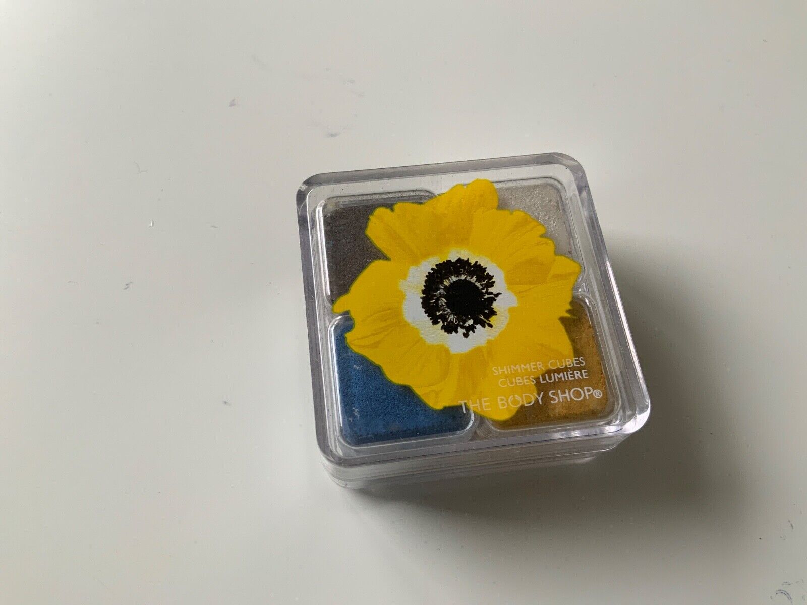 The Body Shop Shimmer Cubes Quad Palette 31. Eye Makeup. Brown, White, Yellow.