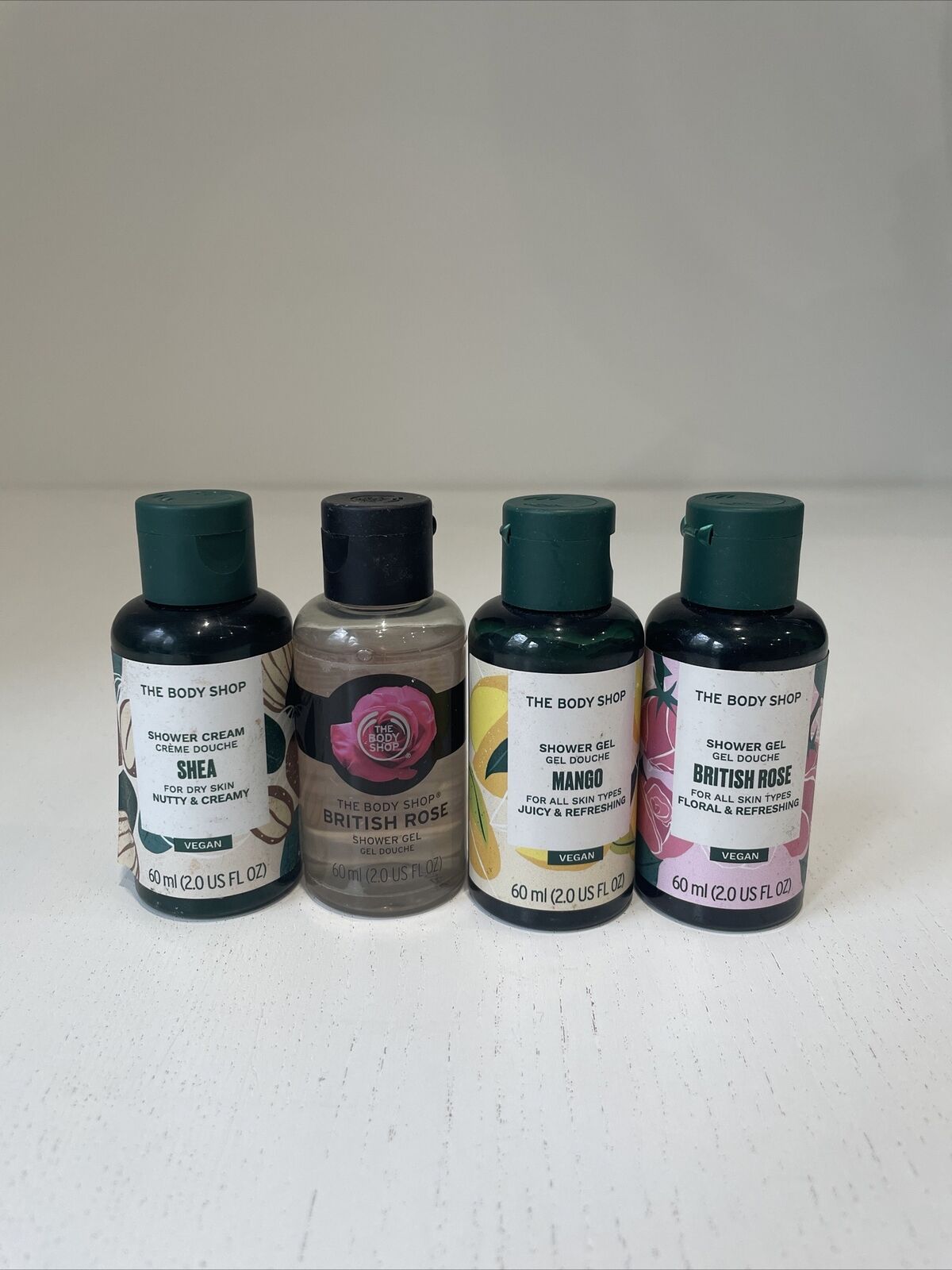 The Body Shop Shower Gel 60ml Bundle 4x British Rose Mango Shea Travel Size