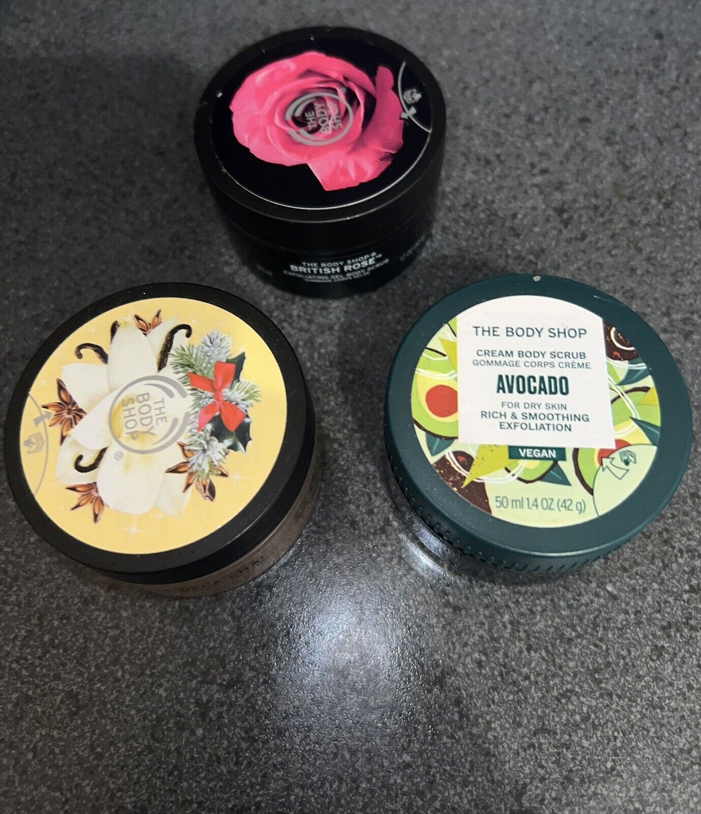 3 X The Body Shop Vanilla Chai, Avocado & British Rose Sugar Body Scrub 50ml