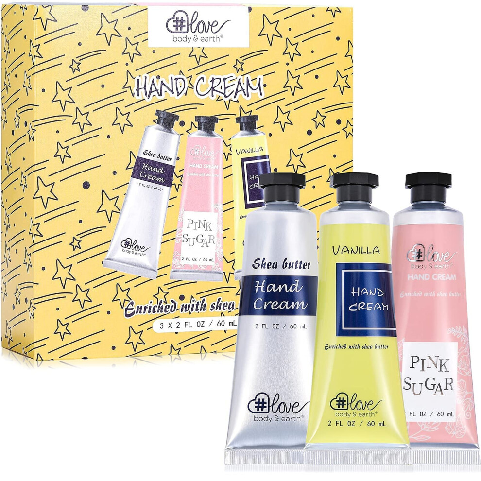 Body & Earth # Love Nourishing Hand Cream Gift Set, 3x2.0 oz, Shea Butter, Argan Oil, Vitamin E, Moisturizing, Fresh Fragrances, For All Skin Types, P