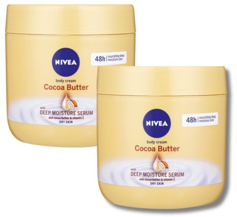 X2 Nivea Body Cream with Deep Moisture Serum, Cocoa Butter & Vitamin E 400ml Tin