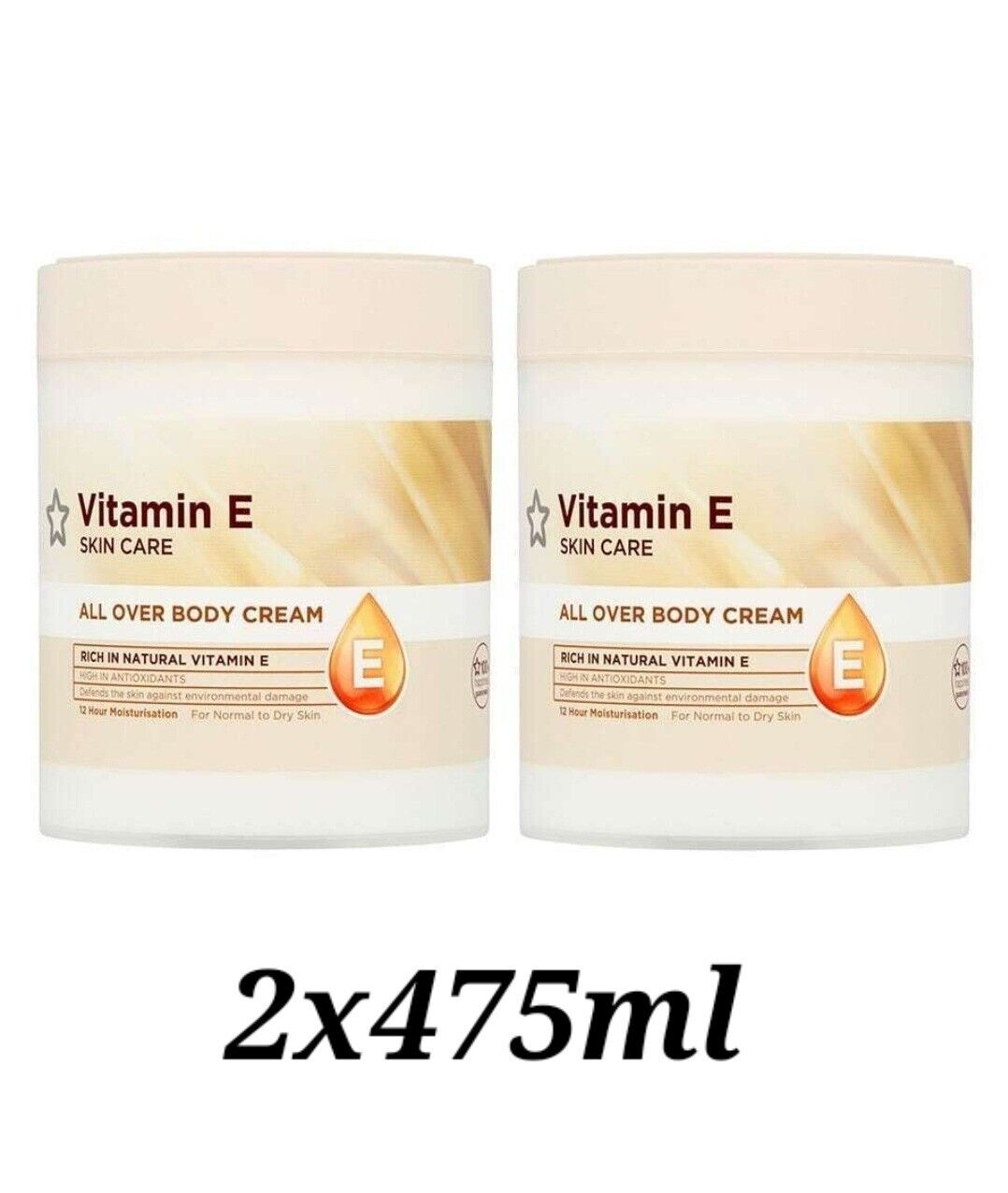 2 X Superdrug VITAMIN E All Over Body Cream 12 Hour Moisturising 475ml