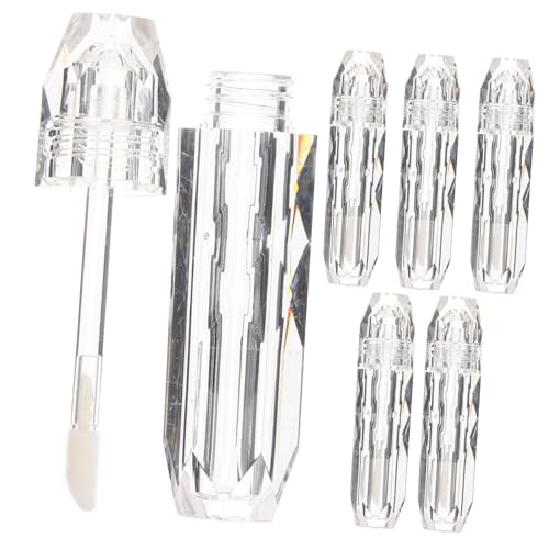 HONITANO 5pcs Small Empty Lip Gloss Tubes with Wand Refillable Lip Balm Containers Clear Body Travel for DIY Oil Dye Storage