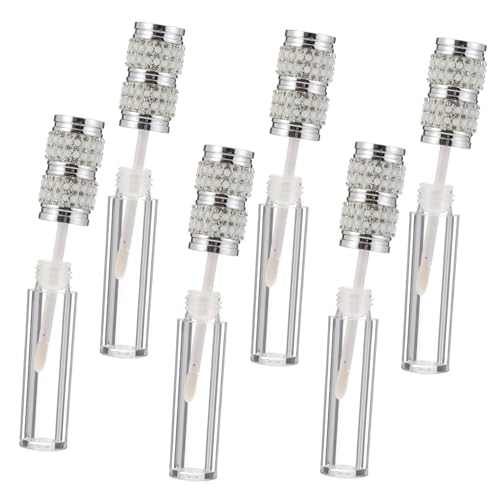 WEKADRIN 6pcs Refillable Lip Gloss Tubes with Body and Rhinestone Cap Portable Lip Color Balm Containers with Brush Wand for Easy Application and Cosmetic Storage