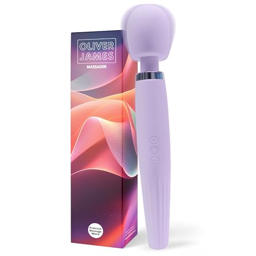 Premium Vibrator Wand by Oliver James - Showerproof & Rechargeable Wand Vibrator with 5 Pleasure Modes & 4 Intensity Levels, Body-Safe Silicone Sex Toys for Her & Him, 12 x 2.2 inches (Pastel Lilac)