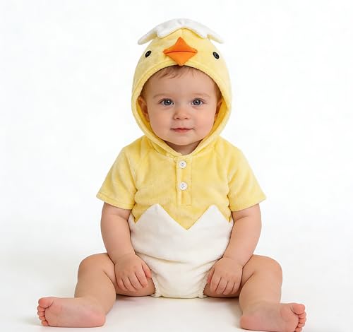 Newborn Clothes Cute Easter Jumpsuit Bodysuit for Baby Girls and Boys Infant Easter Suit Costume Animal Fleece Hoodie Romper Jumpsuit Hooded Chick Egg Set Baby Outfits for Girls (Yellow, 12-18 Months)