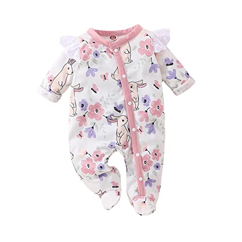 SRTUMEY Unisex Baby One-Pieces Outfit Toddler Girl Clothes Infant Spring Romper Children Floral Print Ruffle Long Sleeve Bodysuit Baby Autumn Casual Jumpsuit Baby Girl Jumpsuit 18-24 Months Pink