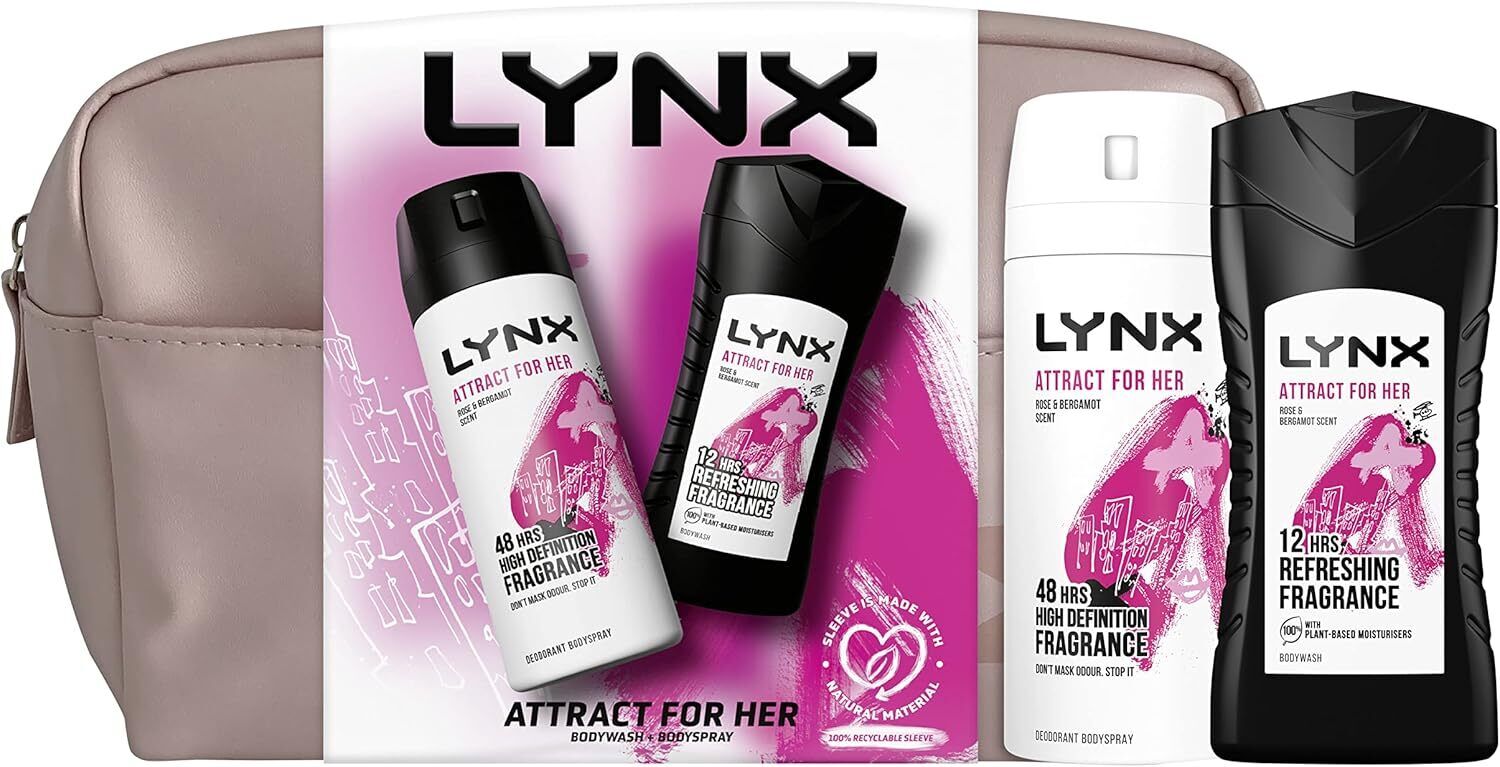 LYNX Attract for Her bodywash & body spray Washbag, 2 piece Gift Set perfect for
